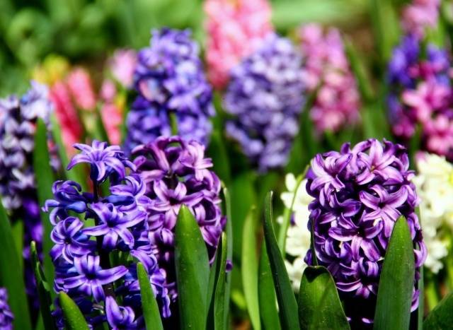 Los cultivadores de jacintos en campo abierto han sido practicados por cultivadores de flores de todo el mundo durante más de cuatrocientos años. El Medio Oriente, los países mediterráneos, el norte de África se consideran el lugar de nacimiento de las flores de primavera. Los criadores holandeses se han esforzado tanto en difundir estas plantas en todos los continentes que hoy en día los Países Bajos pueden considerarse su segunda patria. Exactamente Millones de bulbos se envían anualmente desde Holanda, en este país los criadores están criando todas las nuevas variedades de jacintos, trabajando para expandir sus tonos y tipos.