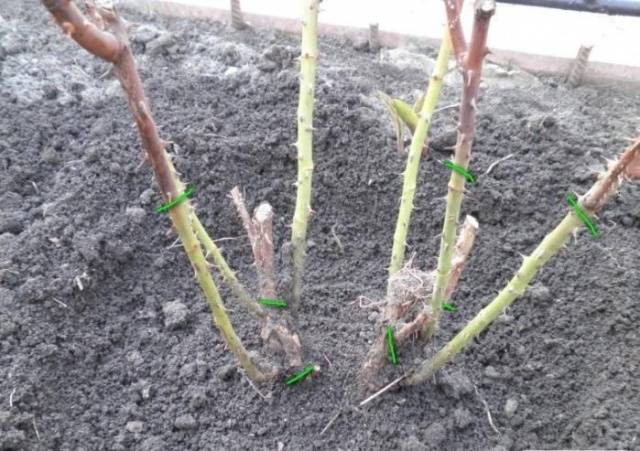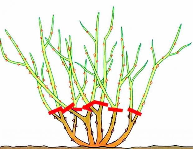 Los tallos se acortan en 3-4 yemas, dejando unos 15 cm. Así, todas las rosas recién plantadas se cortan y té-híbrido variedades destinadas a la participación en exposiciones o la obtención de grandes cogollos.