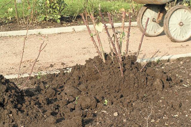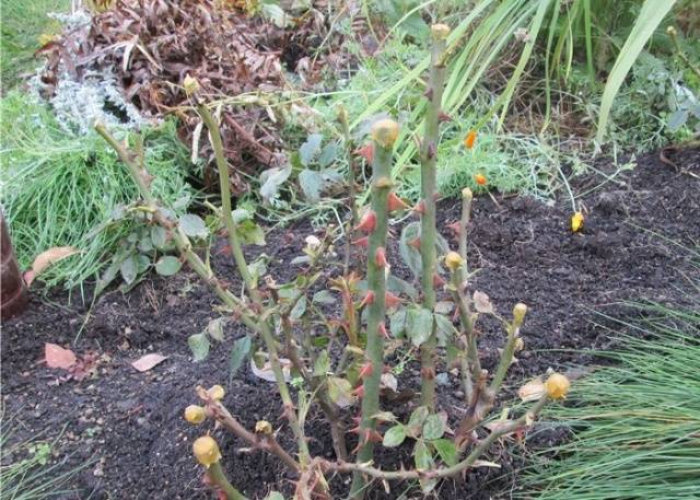 Antes de podar rosas en el otoño, es imperativo quitar el mantillo y quitar los soportes si es necesario.