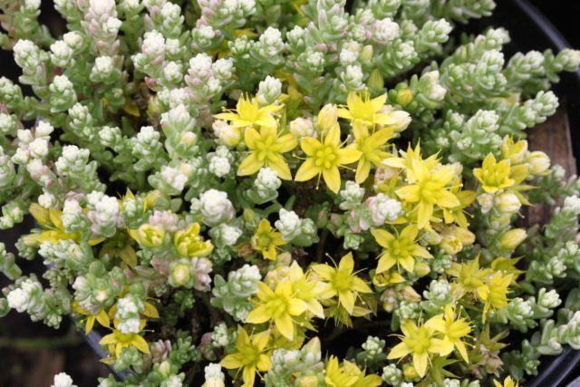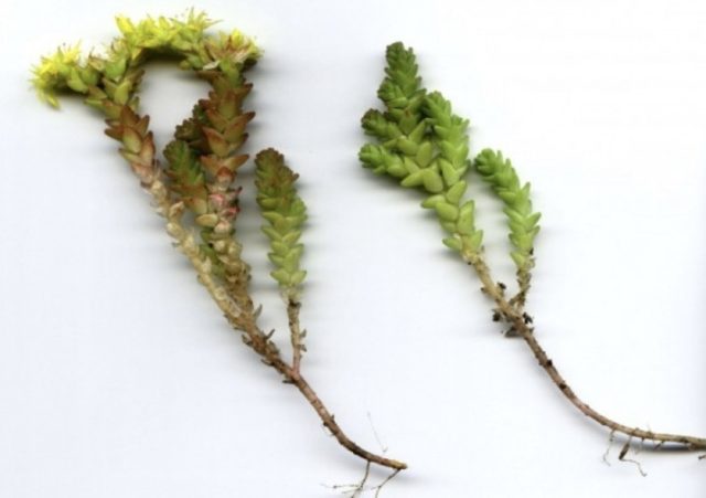 Sedum cáustico es una planta resistente a las enfermedades, pero si el suelo está anegado, puede aparecer la pudrición. En este caso, las áreas afectadas deben eliminarse y los tallos sanos deben tratarse con un desinfectante.
