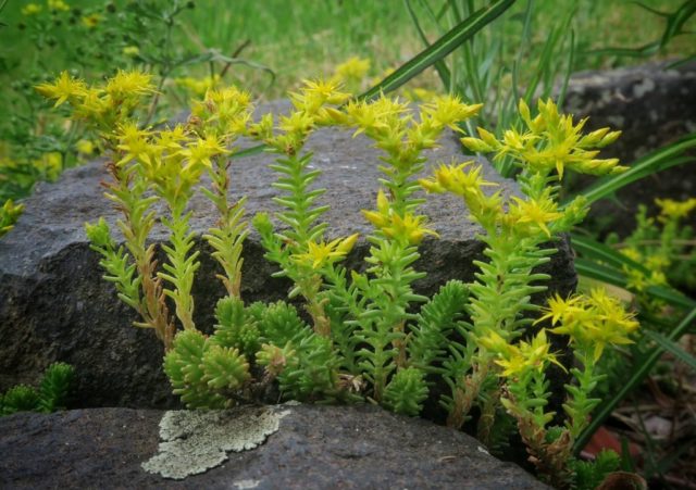 Sedum caustic es una planta ornamental que no requiere un mantenimiento cuidadoso, crece rápidamente y florece profusamente. La planta semisuculenta destaca por sus hojas originales y flores de color amarillo dorado. Es resistente a las heladas y las enfermedades. Al observar las simples reglas de plantación y cuidado, puede decorar el paisaje con una planta extravagante que deleitará a los jardineros con verduras frescas durante todo el año.