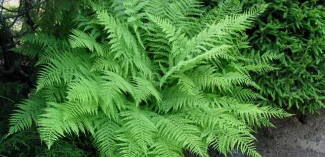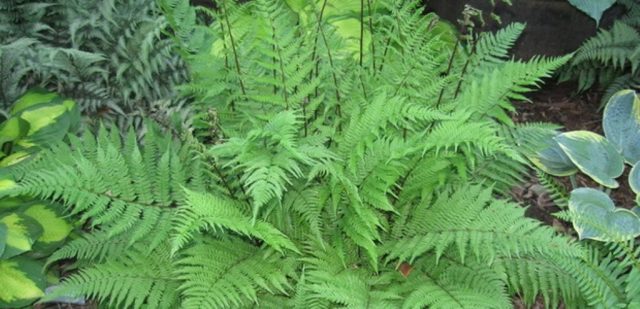 - Mujer - una de las especies más famosas que se pueden encontrar en parcelas personales. La planta recibió su nombre por el delicioso follaje de encaje. En condiciones naturales, el helecho hembra crece en América del Norte y Europa central. El helecho hembra crece hasta 120 cm de altura. Las hojas que crecen a principios de la primavera alcanzan los 100 cm, tienen un follaje de olivo ligero ovalado, pinnado disecado, recogido en un grupo denso. El sistema de raíces denso y poderoso tiene propiedades medicinales, por lo que se usan a menudo en la medicina tradicional. Gracias al hermoso follaje, la hembra kochedzhnik se utiliza para diseñar casas de verano y parques de la ciudad.
