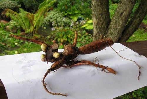 El proceso termina con el hecho de que ponen en orden el "trato" en sí. Los viejos procesos de raíz podrida deben eliminarse sin falta. Los sanos deben acortarse a 15-18 cm.