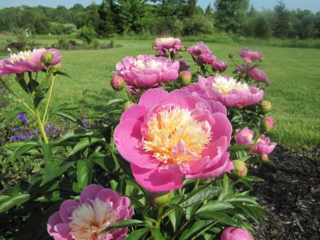 La peonía herbácea Bowl of Beauty es igualmente buena en cualquier composición de paisaje. Todas las posibles combinaciones de esta variedad se basan en las características de floración y color.