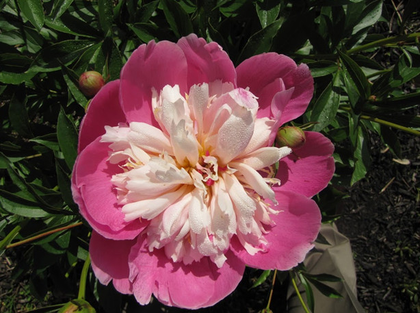 El primer paso es encontrar un lugar adecuado, teniendo en cuenta los requisitos de la peonía. A la sombra e incluso a la sombra parcial, el Bowl of Beauty no florecerá. Un lugar bien iluminado, sin sombra de grandes plantas o edificios, es adecuado para plantar.
