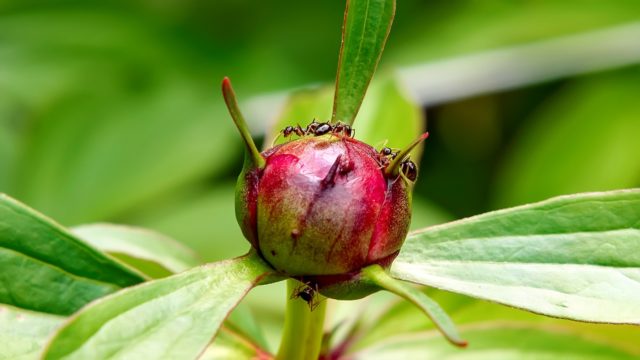 - Hormigas... Estos insectos atacan a la peonía durante el período de formación de yemas, lo que conduce a su deformación. Para eliminar el problema, es necesario tratar la planta con Inta-Vir.