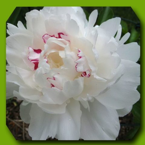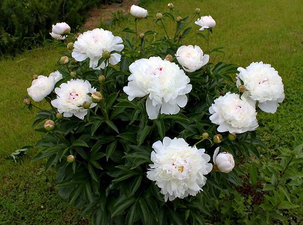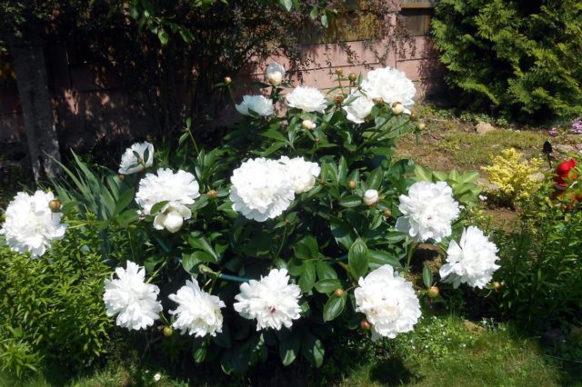 Muy a menudo, las peonías de la variedad Festival Maxima se plantan alrededor del perímetro de cercas y cercas.