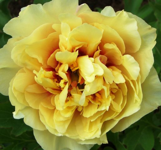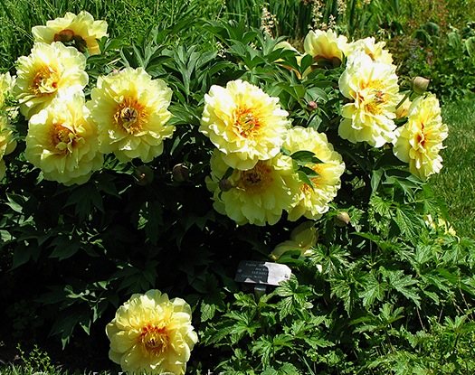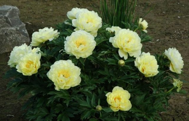 Peony Garden Treasure es una variedad híbrida de peonías que apareció en los EE. UU. En 1984. Da grandes flores amarillas muy exuberantes: con el cuidado adecuado, aparecen hasta 50 peonías en 1 arbusto. Debido a su alta resistencia al invierno, se puede cultivar no solo en la parte central de Rusia, sino también en algunas regiones de los Urales y el sur de Siberia.