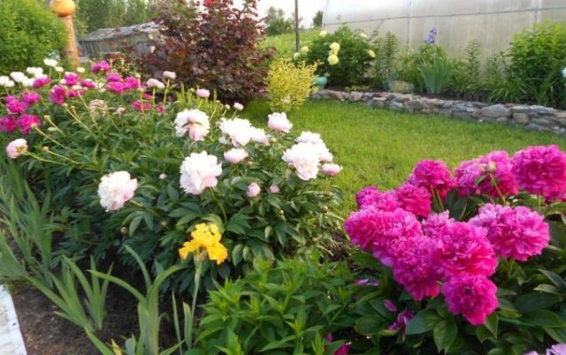 Es mejor no combinar peonías con otras plantas con flores grandes, por ejemplo, con rosas, ya que competirán por la atención y la belleza puede desvanecerse.