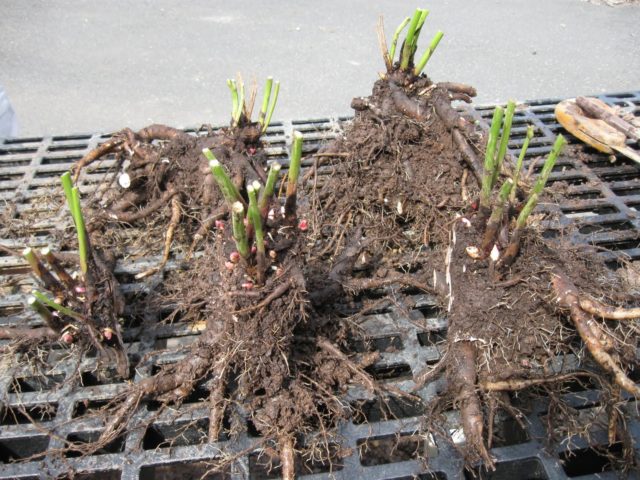 El material de siembra se obtiene de plantas jóvenes que han alcanzado la edad de floración. El sistema de raíces del corte debe estar bien desarrollado y tener 3-5 yemas. Las plantas con cortes húmedos y podridos, floraciones, crecimientos y nódulos nudosos en las raíces no son adecuadas para plantar.