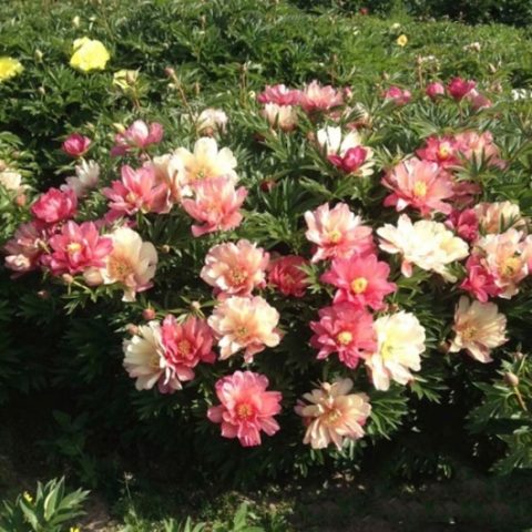 - La resistencia a las heladas provino de las peonías herbáceas. Además, la parte del suelo de la planta muere en otoño y no es necesario tapar los tallos durante el invierno;