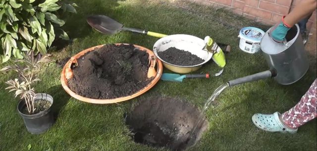 El hoyo de peonía de Kansas se prepara con anticipación. La raíz de la planta es poderosa, crece de 70 a 80 cm de ancho, se profundiza aproximadamente igual. Al preparar el agujero, se guían por estos parámetros. El fondo del pozo se cierra con una almohadilla de drenaje y 1/3 de la profundidad se cubre con una mezcla de nutrientes con la adición de superfosfato.El sustrato se prepara a partir de turba y compost, si el suelo es arcilloso, se agrega arena.