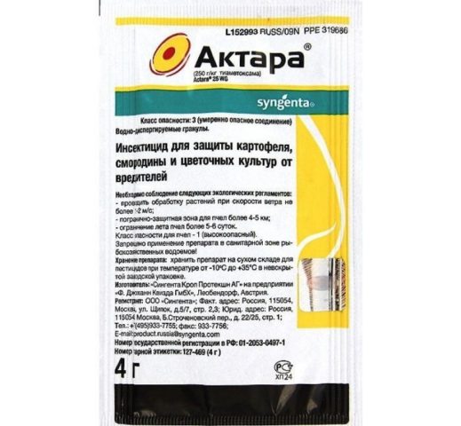 Los gránulos se diluyen en agua y se riegan con una peonía de Kansas debajo de la raíz.