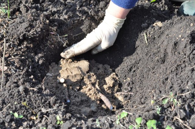 - La mezcla de siembra se vierte y la plántula se enraiza de modo que el collar de la raíz permanezca sobre la superficie a una altura de 3-4 cm.
