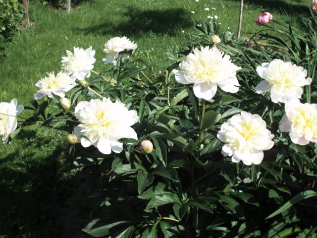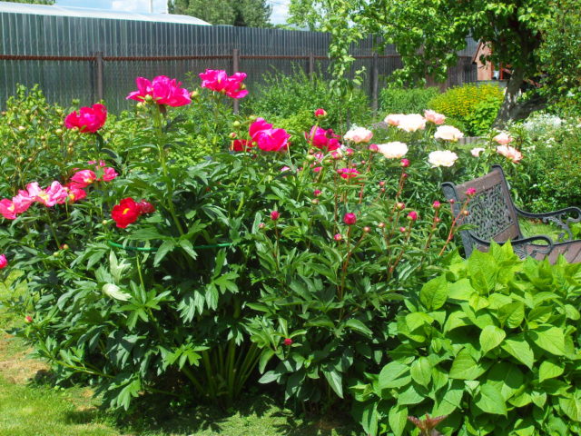Una de las opciones en el diseño del paisaje es la creación de un pionario. Junto con Laura Dessert, puede plantar otras variedades con una altura similar, pero en diferentes tonos: rojo, carmesí, rosa.