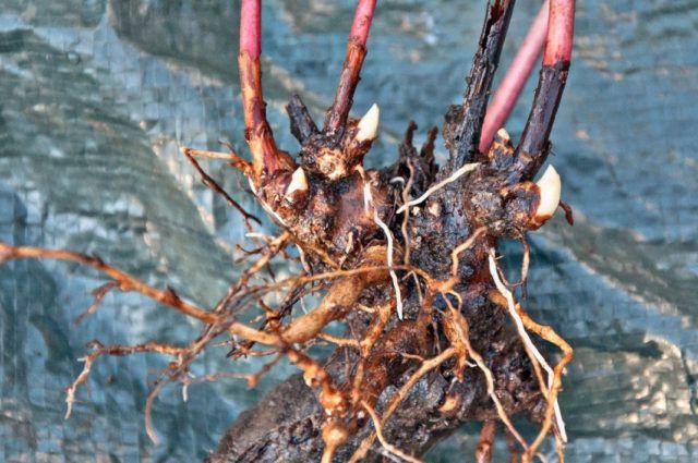 Rizoma de peonía con procesos adventicios.