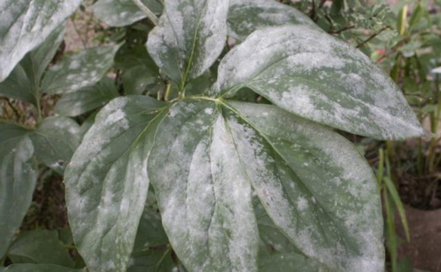 - Moho polvoriento... La enfermedad se desarrolla con mucha humedad y altas temperaturas. Se manifiesta como manchas blancas en las hojas, que luego crecen y se funden en un todo. Como resultado, adquieren un color gris sucio. La enfermedad interfiere con el proceso de fotosíntesis, como resultado de lo cual las hojas no pueden funcionar normalmente y se marchitan. Se recomienda utilizar "Topaz" o "Speed" para el tratamiento.