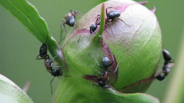 - Hormigas... Estos insectos atacan la planta durante el período de formación de yemas, lo que conduce a su deformación. Para luchar contra las hormigas, debe utilizar una infusión de ajo a razón de 10 dientes por 1 litro de agua. La mezcla debe insistirse durante un día y luego rociar los cogollos.