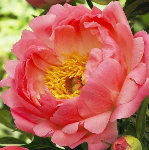 Las inflorescencias de peonía Pink Hawaiian Coral atraen con un delicado tono coral.