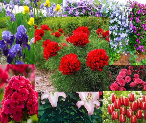 Lirios, clemátides, floxes, lirios, tulipanes y rosas pueden convertirse en vecinos en el macizo de flores.