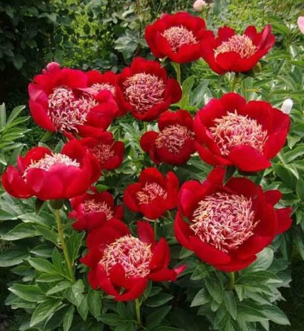 Peonies Sword Dance se ve espectacular en plantaciones individuales