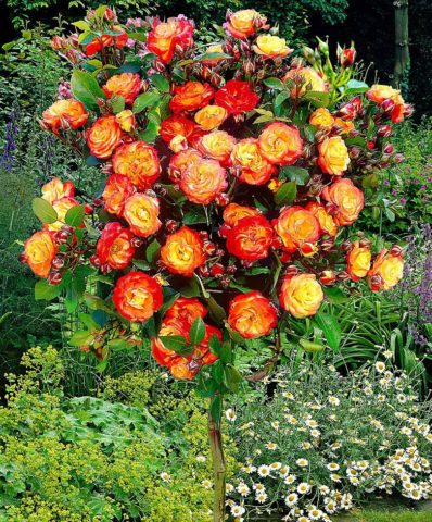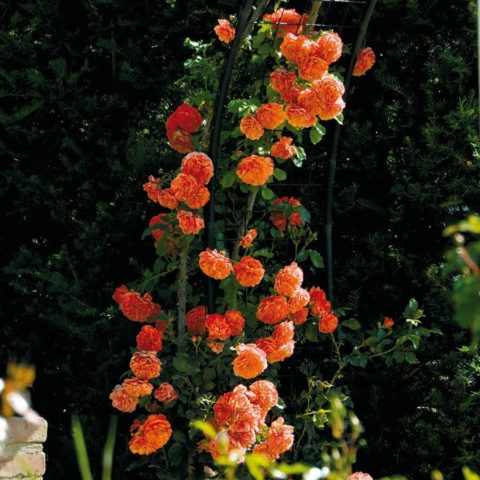 Rumba es adecuada para cualquier composición que incluya rosas trepadoras de tamaño mediano.