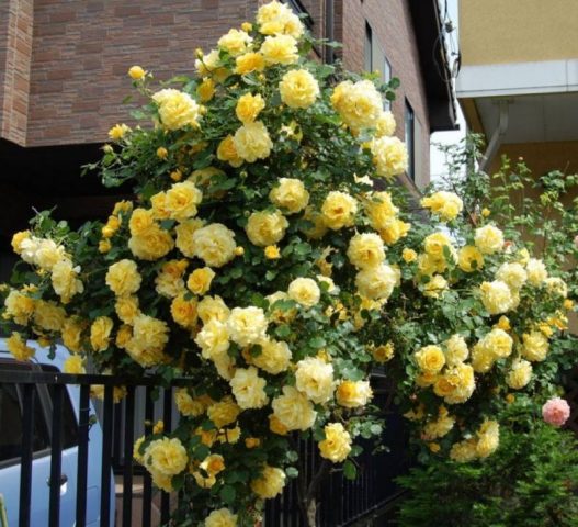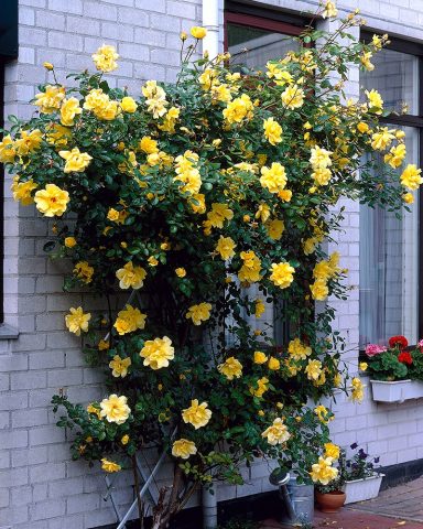 Cultivo y cuidado de una rosa trepadora Golden Shovers