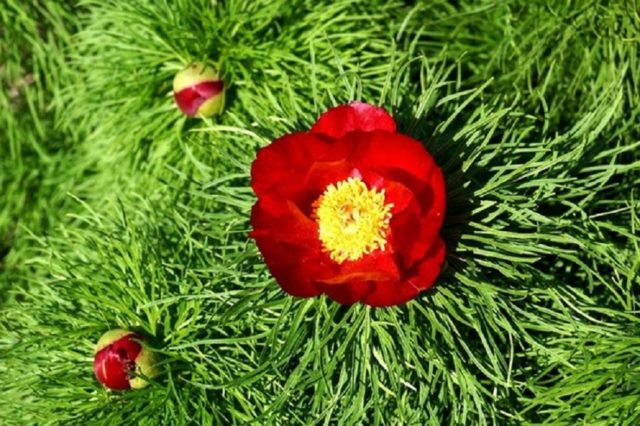 La peonía de hojas delgadas es una perenne increíblemente hermosa. Llama la atención por sus flores de color rojo vivo y sus hojas decorativas. Los jardineros conocen la planta con otros nombres: peonía de hojas estrechas o cuervo. En Inglaterra, tiene uno más: una peonía de helecho, que el cultivo recibió por espectaculares hojas disecadas. Se refiere a las plantas perennes herbáceas de la familia Peony. En latín se designa como Paeonia tenuifolia.
