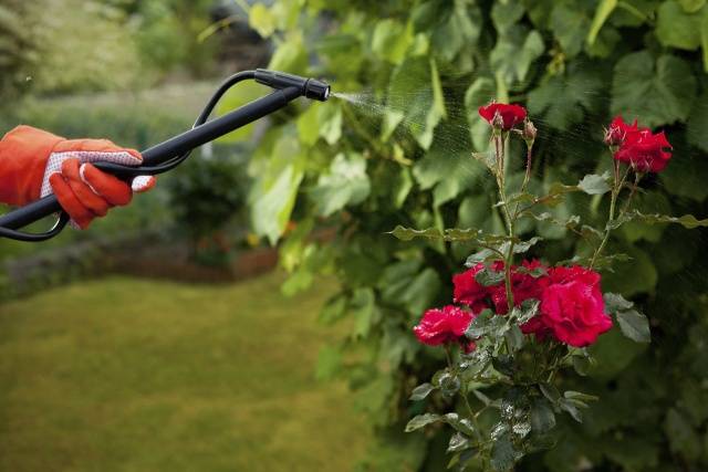 El tratamiento se realiza mediante pulverización de rosas. Para ello, se prepara una solución que contiene 30 g de sulfato ferroso. Primero, la sustancia se diluye con una pequeña cantidad de agua, luego se le agregan otros 5 litros de agua.