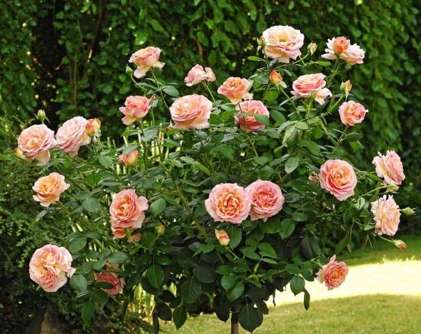 La esencia de cultivar rosas en un tallo es que las rosas se injertan en un brote de rosa mosqueta, a partir del cual se forma una corona de flores. Charles Austin se ve bien en portainjerto y solo, y en combinación con otras variedades. En este último caso, es necesario elegir injertos de la misma fuerza para que las plantas no se opriman entre sí. Por lo general, la inoculación se realiza en una incisión en forma de T. Se forma una rosa estándar en la primavera. Puede ser un "árbol" en flor, y un redondeado de tamaño insuficiente. arbusto, que decorará el tobogán alpino.