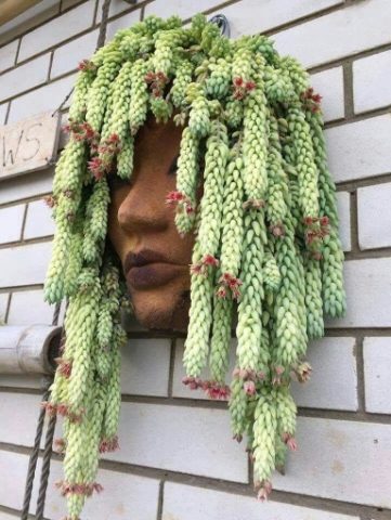 La suculenta ha conservado por completo su apariencia atractiva y florece voluntariamente, al propietario de la instalación tampoco se le puede negar la creatividad.