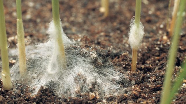 Un signo de infección por hongos son las manchas oscuras en las hojas y los tallos. Las partes afectadas se cortan y se queman.