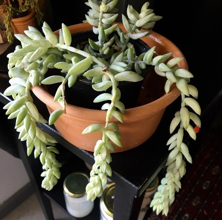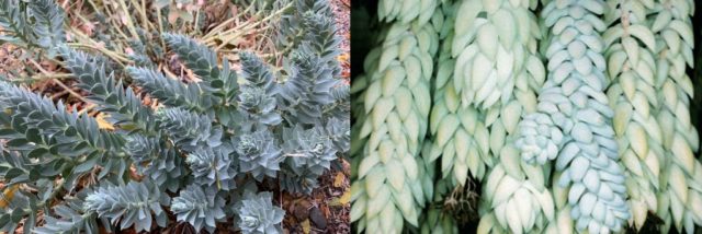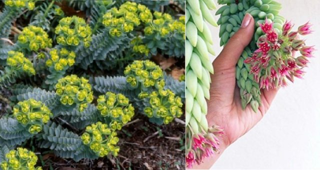 A la izquierda de la foto está el escándalo, a la derecha está el sedum de Morgan: