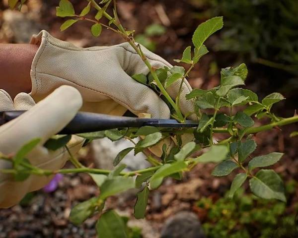 - El corte se realiza por encima del brote exterior a una altura de 5 mm para que el futuro brote no crezca dentro del rosal.