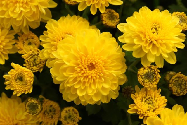 Una gran cantidad de variedades le permite crear una variedad de composiciones a partir de crisantemos amarillos.