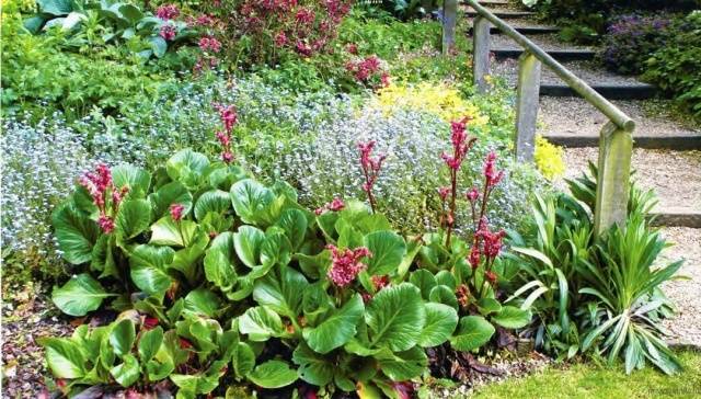 Badan, hosta, buzulnik, brunner, sedum, elimus son plantas con una forma y un color de hojas inusuales. Hibernan muy bien en la zona media y no requieren ninguna protección adicional. Por lo general, después de la primera helada, los jardineros eliminan la parte superior muerta y cubren el suelo con turba o pérgola antes del invierno.