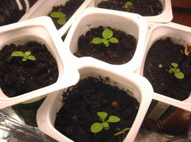 La aparición del primer par de hojas verdaderas sugiere que es hora de bucear las plántulas de petunias. Esta etapa es muy importante, ya que la inmersión no permite un estiramiento excesivo de los tallos, ayuda a fortalecer las raíces.