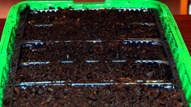 Los agujeros para drenar el exceso de agua en el contenedor de plántulas deben ser obligatorios, ya que a la planta no le gusta el suelo anegado.