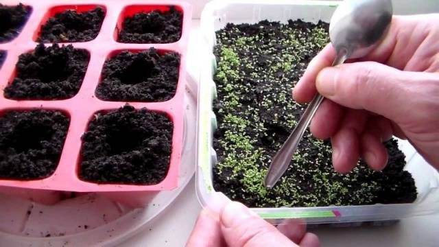 Después de sembrar las semillas, es necesario rociarlas con agua de una botella rociadora. Lo mejor es agregar un poco de manganeso al agua de riego en los primeros días para desinfectar los brotes.
