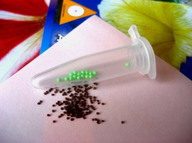 Por supuesto, el costo de las semillas granuladas será mayor. Pero su ventaja radica en el hecho de que, gracias a la cápsula de color, el tamaño de cada semilla aumenta; es más conveniente distribuirlas en el suelo, ya que las semillas en los gránulos son más grandes y más notables.