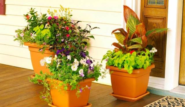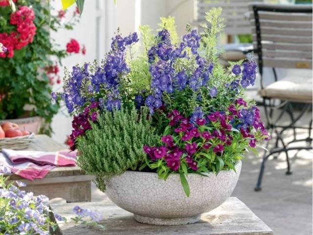 - Las plantas erectas y ampelosas son la mejor combinación para macetas de exterior;