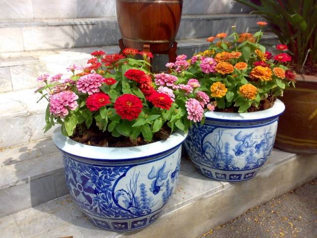 - Zinnia variada en altura de 15 a 100 cm. Para las composiciones, elija zinnia enano o medio. Zinia no tiene pretensiones en el cuidado;