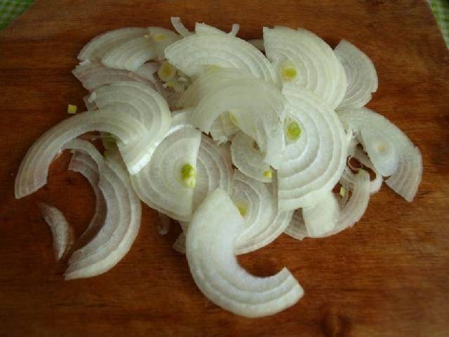 Calentar bien la sartén, agregar 2 cucharadas. l. aceite vegetal, sofreír la cebolla hasta que esté dorada.