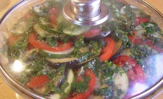 - Freír las verduras por separado. Vierta las berenjenas con huevos e insista. Luego combine, vierta crema agria o mayonesa, guiso. Espolvorea con hierbas frescas al servir.
