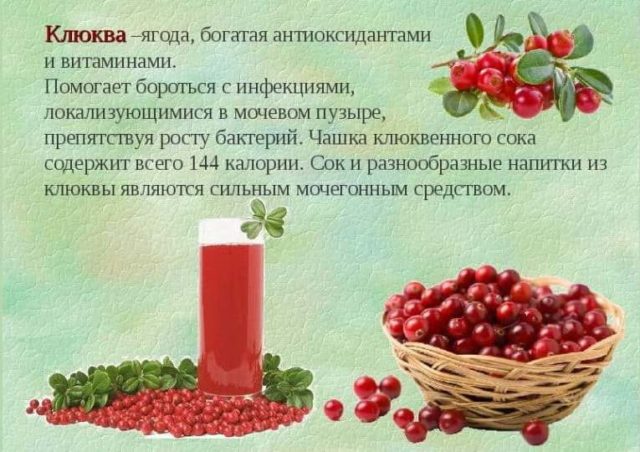 El jugo de arándano rojo oxida la orina, inhibiendo así la propagación de la infección. Es gracias a esta característica de las bayas que es posible evitar que la fase aguda de la enfermedad se convierta en crónica.