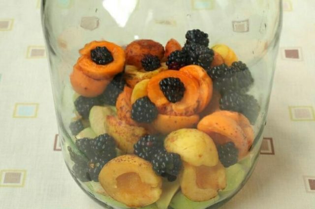 Las frutas colocadas en frascos se vierten con jarabe de azúcar hirviendo. La bebida se prepara por esterilización; su tiempo no es más de 20 minutos. El contenedor se enrolla con una máquina de escribir y se cubre con una manta gruesa.