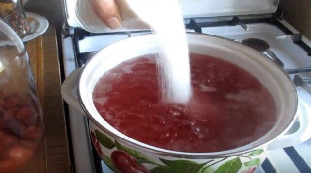 - Agregue azúcar al agua en la que se blanquean las bayas. Vuelva a hervir, retire del fuego después de 2-3 minutos.