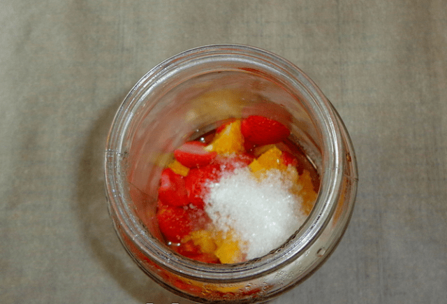 - Escurre el líquido, agrega azúcar a las bayas en un frasco.