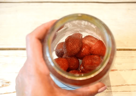 - Ponlos junto con las fresas en un frasco.