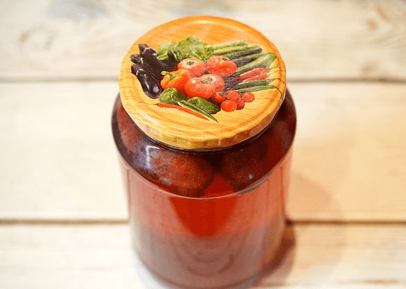 - Vierta inmediatamente el almíbar en frascos, enrolle las tapas.